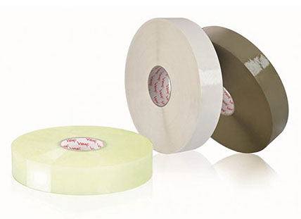 Adhesive tape for high performance packaging. Designed to be used with automatic machines, decrease time in ribbon changes. It works perfectly at high and low temperatures.
